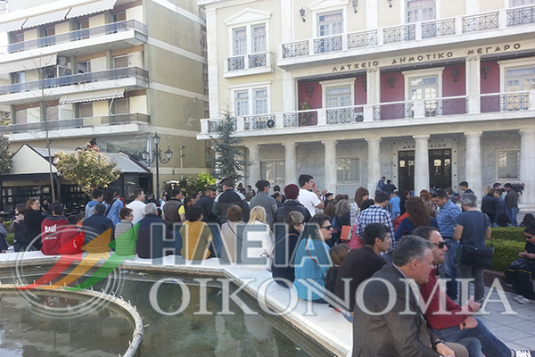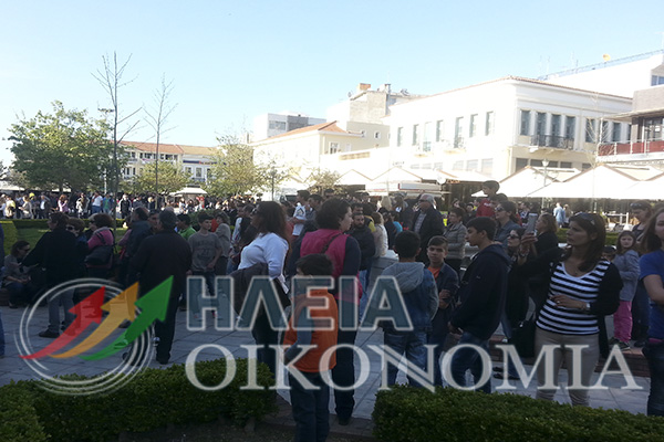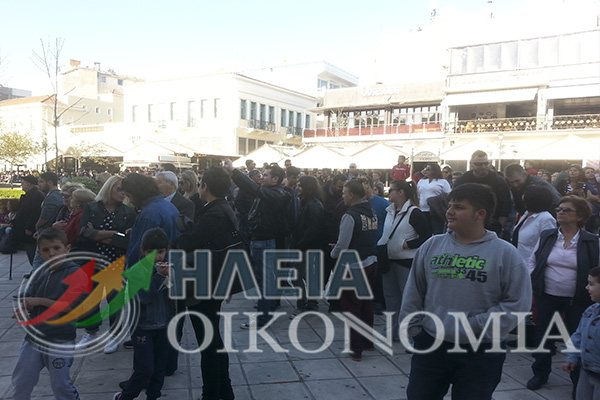Μεγάλη συγκέντρωση διεξήχθη το Σάββατο στην κεντρική πλατεία Πύργου με εκατοντάδες πολίτες να αφήνουν σκουπίδια μπροστά από το Δημαρχείο.
