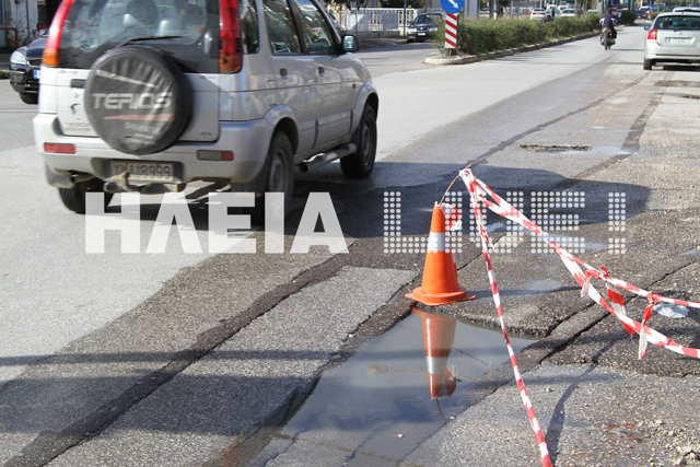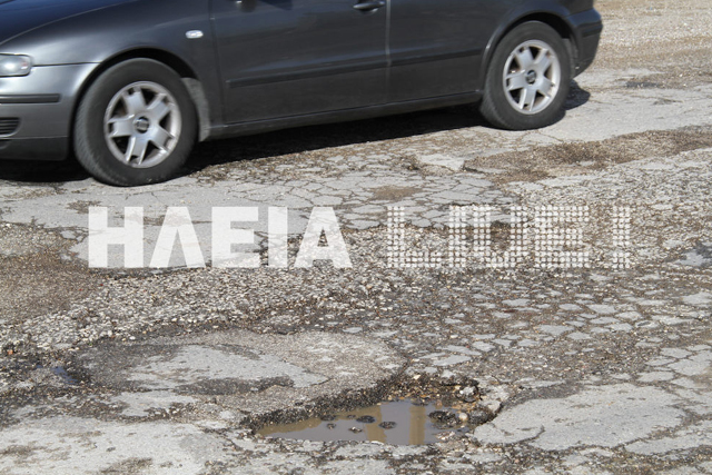Πολλές λακκούβες υπάρχουν στους δρόμους γύρω από το πρώην 1ο Γυμνάσιο Πύργου. Στο συγκεκριμένο σημείο μάλιστα, οι δρόμοι θυμίζουν βομβαρδισμένο τοπίο και οι λακκούβες «κρατήρες».