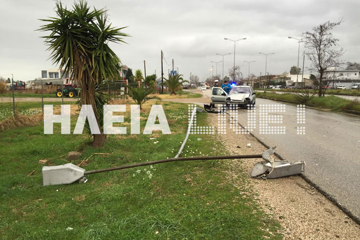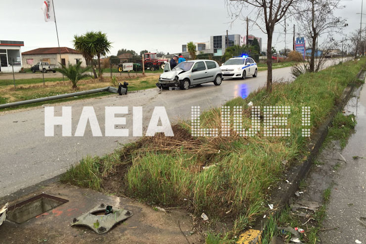 Η μπόρα της Παρασκευής προκάλεσε ολισθηρότητα στους δρόμους της Ηλείας. Μια γυναίκα στάθηκε τυχερή μέσα στην ατυχία της, όταν το αυτοκίνητο που οδηγούσε στην Ε.Ο. Πατρών – Πύργου με κατεύθυνση από Πύργο προς Πάτρα, εξετράπη της πορείας του, πέρασε στο αντίθετο ρεύμα κυκλοφορίας, «καβάλησε» την διαχωριστική νησίδα της βοηθητικής οδού και «έκοψε» μια μεταλλική κολώνα ηλεκτροφωτισμού.