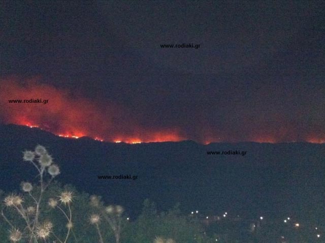 Οι πυροσβεστικές δυνάμεις της Ρόδου έχουν τεθεί σε γενική επιφυλακή.
