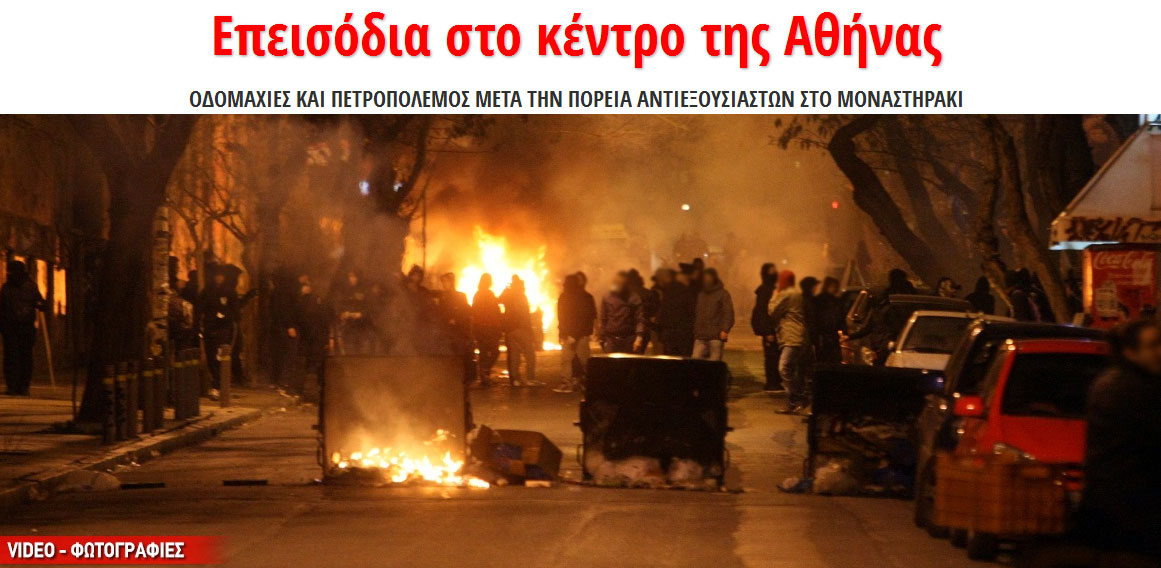 «Μία πορεία διαμαρτυρίας μερικών δεκάδων ατόμων εξελίχτηκε σε πορεία αισθητικού βανδαλισμού κτηρίων και μνημείων της πόλης.