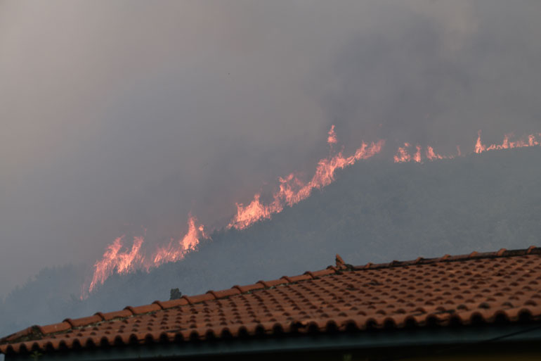 Οι κάτοικοι των χωριών Βάλμη, Κότρωνα, Καραγιαννέικα και Δαλαμπορέικα που έλαβαν μήνυμα από το 112 για να απομακρυνθούν από τα σπίτια τους, βιώνουν στιγμές αγωνίας ελπίζοντας να μην φθάσει η φωτιά στα σπίτια τους.