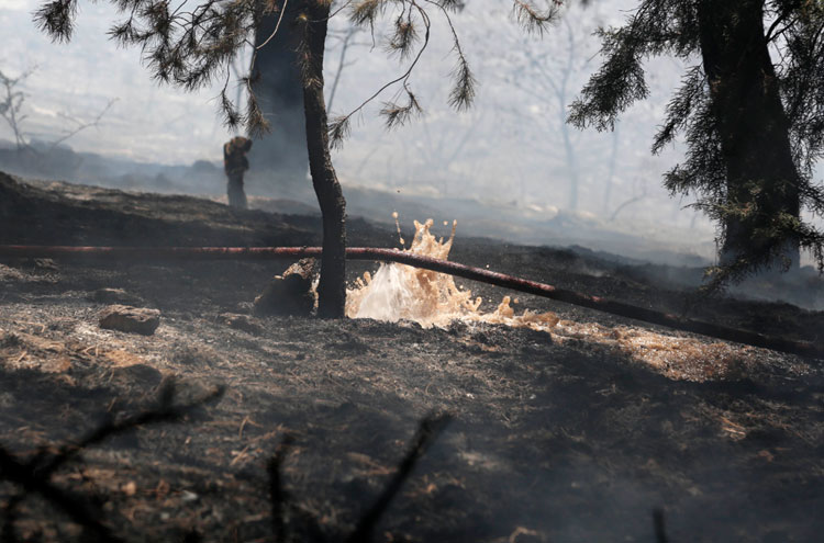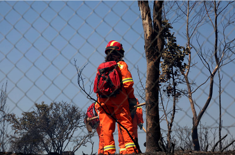 Σύμφωνα με την Πυροσβεστική Υπηρεσία, το μέτωπο εμφανίζει καλύτερη εικόνα, χάρη στην μείωση της έντασης των ανέμων που πνέουν στην περιοχή.