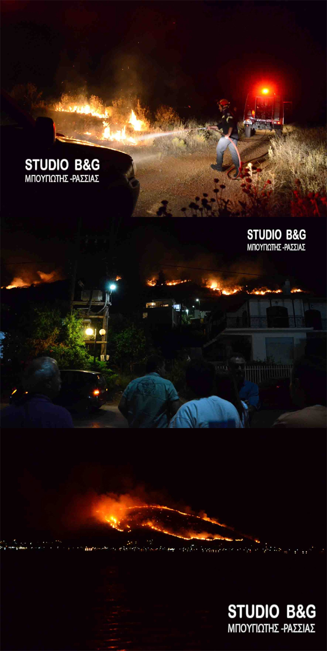 Μεγάλη φωτιά ξέσπασε το βράδυ του Σαββάτου στην περιοχή Μύλων 10 χλμ. από την πόλη του Ναυπλίου.