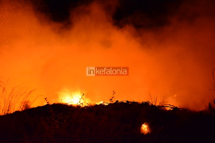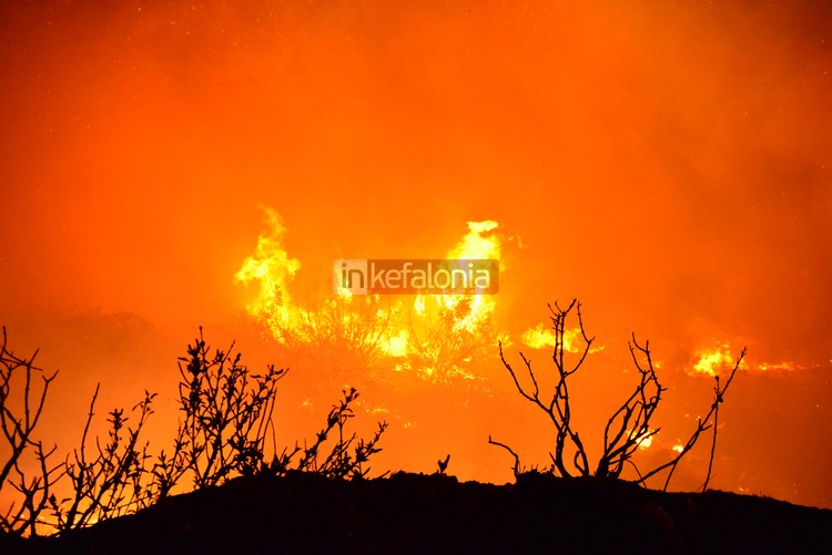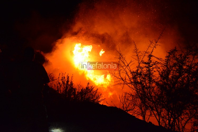 Σύμφωνα με το inkefalonia.gr, η φωτιά εκδηλώθηκε στις 21.40 στην περιοχή «Βρύση του Κοσμά», στο κάτω μέρος του χωριού.
