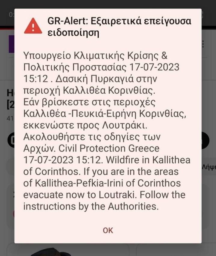 Νέα εντολή εκκένωσης δόθηκε από το 112 προς τους κατοίκους των περιοχών Καλαμάκι, Ισθμίων και Παράδεισος προς Κόρινθο.