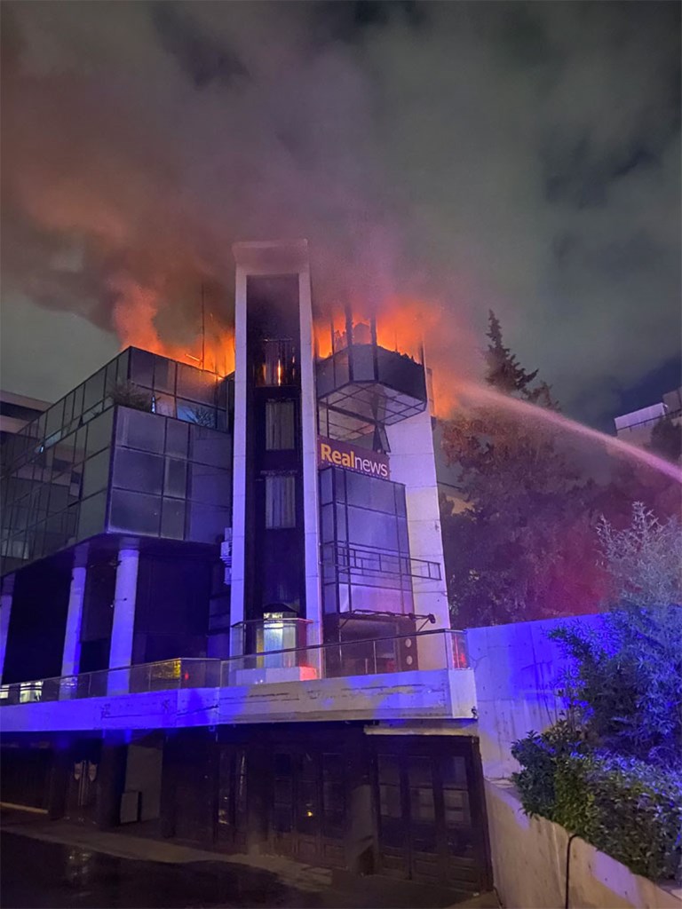 Μεγάλη φωτιά ξέσπασε τα ξημερώματα της Τετάρτης στις εγκαταστάσεις του Real, στο Μαρούσι. Η φωτιά ξεκίνησε από τον πάνω όροφο του κτηρίου, όπου στεγάζεται ο Real FM 97,8, και επεκτάθηκε προς τα κάτω.