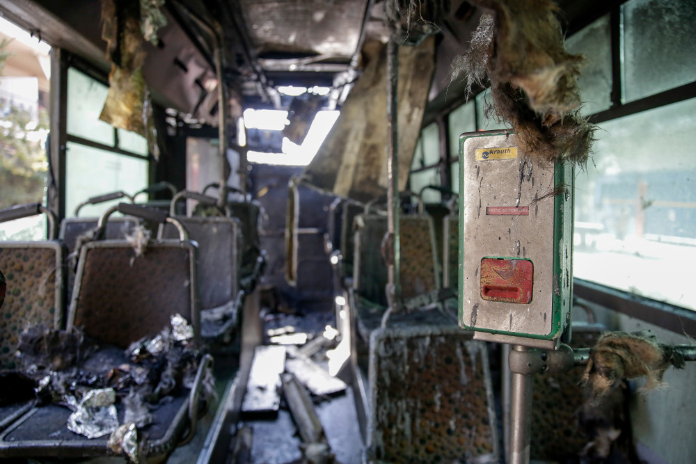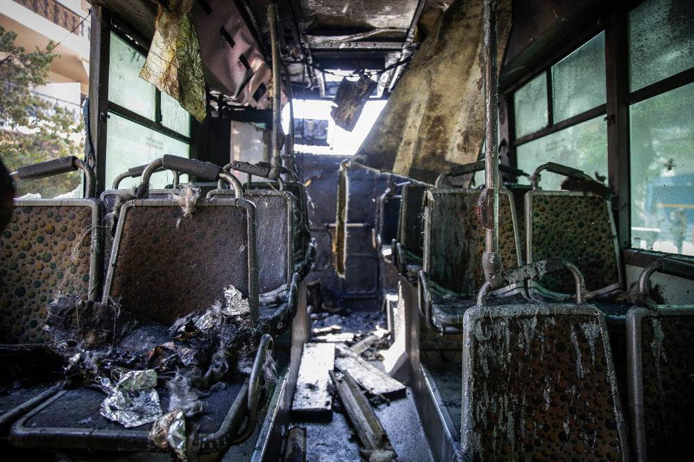 Από την πυρκαγιά καταστράφηκε ολοσχερώς το λεωφορείο και ένα ακόμα αυτοκίνητο που ήταν δίπλα του έπαθε σοβαρές ζημιές. Όλοι οι επιβάτες κατέβηκαν αμέσως και δεν υπήρξε κανένας τραυματισμός.