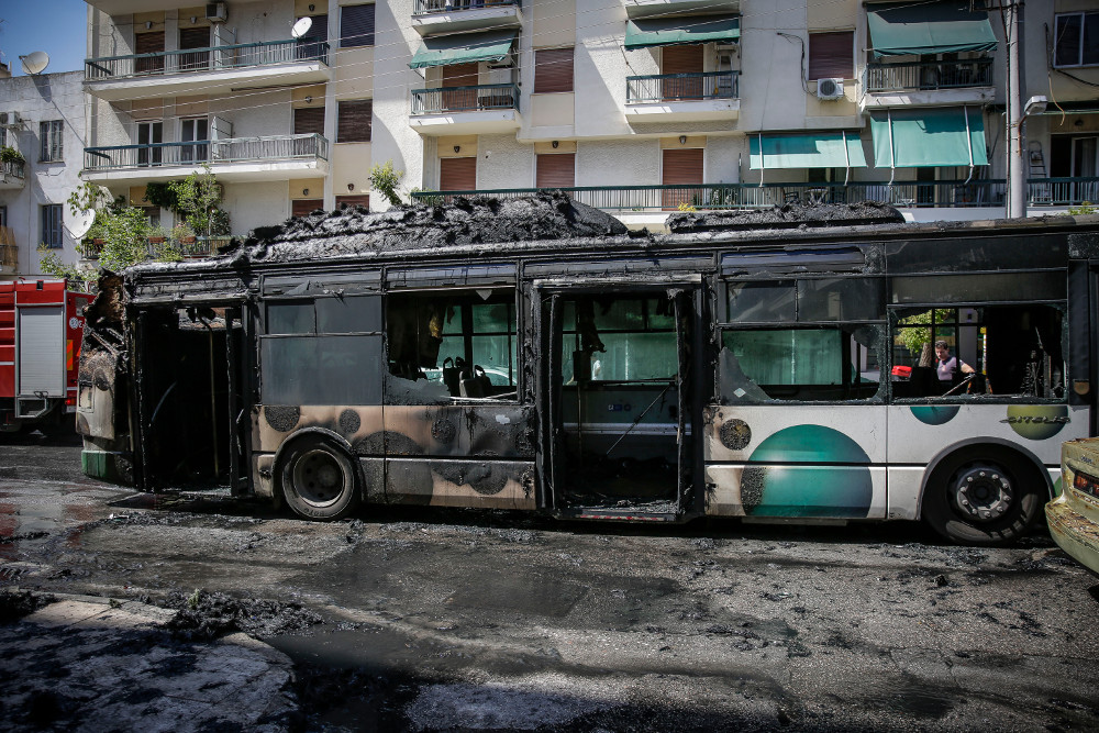 Πυρκαγιά σε αστικό λεωφορείο στη συμβολή των οδών Νιρβάνα και Αχαρνών στα Κάτω Πατήσια ξέσπασε το Σάββατο 9 Ιουνίου το μεσημέρι.