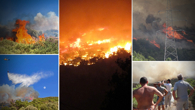 Ήδη έχουν εκκενωθεί οι οικισμοί Τσαΐρη και Αγία Βαρβάρα. Το μέτωπο μήκους ενάμιση χιλιομέτρου έχει πολυδιασπαστεί και δεν μπορεί να ελεγχθεί ούτε από τις εναέριες ούτε από τις επίγειες δυνάμεις.