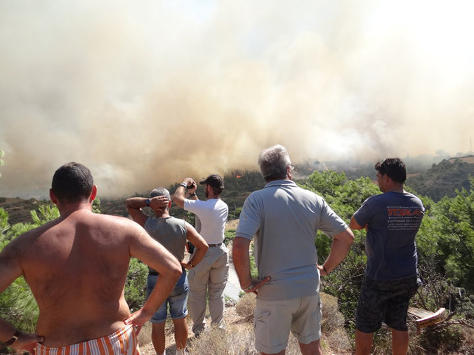 Δύσκολη είναι η αποψινή νύχτα για το νησί της Ρόδου, καθώς η φωτιά που ξέσπασε από τις 3 το μεσημέρι του Σαββάτου σε δασική περιοχή ανάμεσα σε Τσαΐρι και Παστίδα συνεχίζει να καίει ανεξέλεγκτα. Λόγω των ισχυρών ανέμων η φωτιά επεκτάθηκε γρήγορα και η καταστάση χαρακτηρίζεται «εκτός ελέγχου», ενώ πρωταρχικός στόχος των δυνάμεων πυρόσβεσης είναι να μην κινδυνεύσουν ανθρώπινες ζωές και σπίτια. Πυροσβεστικές δυνάμεις έχουν καταφθάσει από την Αθήνα και τη Θεσσαλονίκη προκειμένου να συνδράμουν στις προσπάθειες κατάσβεσης.