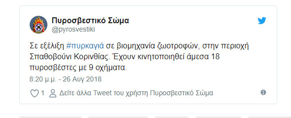 Σε εξέλιξη βρίσκεται πυρκαγιά που εκδηλώθηκε νωρίς το βράδυ σε βιομηχανία ζωοτροφών στην περιοχή Σπαθοβούνι Κορινθίας, ενώ σημειώνεται ότι δεν βρίσκεται κάποιος οικισμός κοντά στο σημείο της φωτιάς.