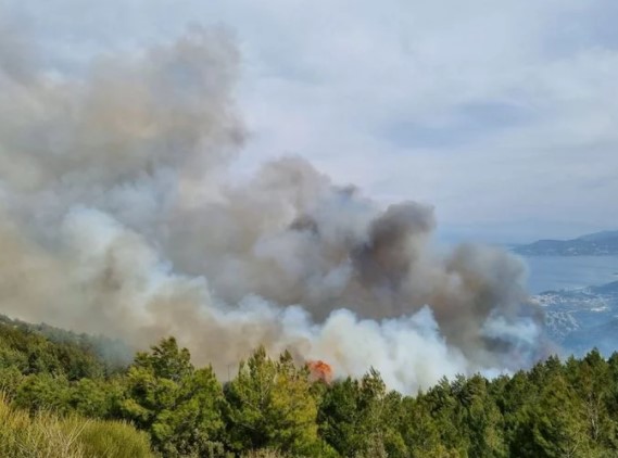 Εξακολουθεί να μαίνεται η πυρκαγιά που ξέσπασε το πρωί της Τρίτης στη Σάμο, οδηγώντας στην προληπτική εκκένωση του χωριού των Βουρλιωτών.