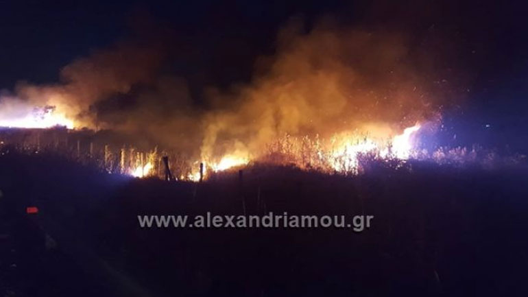 Φωτιά ξέσπασε το βράδυ της Τετάρτης στην περιοχή του Κλειδίου στην Ημαθία, παραπλεύρως της Εγνατίας Οδού.