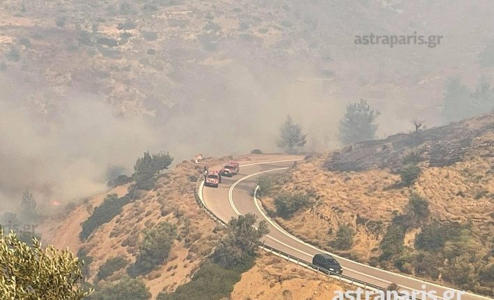 Στην περιοχή βρίσκονται και επιχειρούν ισχυρές δυνάμεις: 42 πυροσβέστες, 5 οχήματα, δύο πεζοπόρα τμήματα, τρία ελικόπτερα και έξι αεροσκάφη.