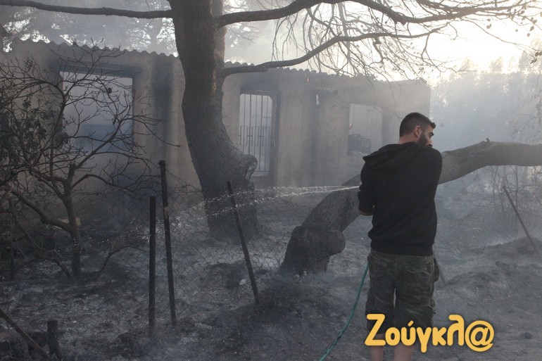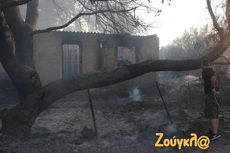 Υπάρχουν ζημιές σε σπίτια και περιουσίες, ιδιαίτερα στις περιοχές Ντράφι, Παλλήνη και Γέρακας καθώς το μέτωπο πέρασε μέσα από τον οικισμό.