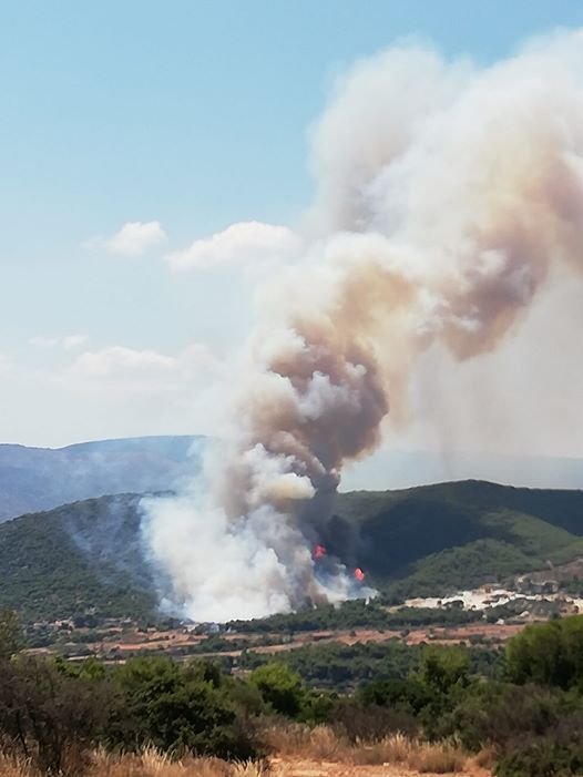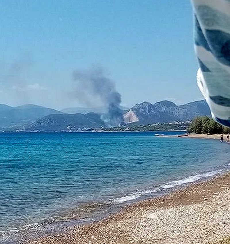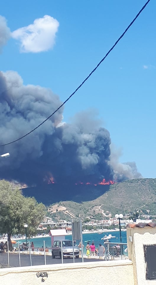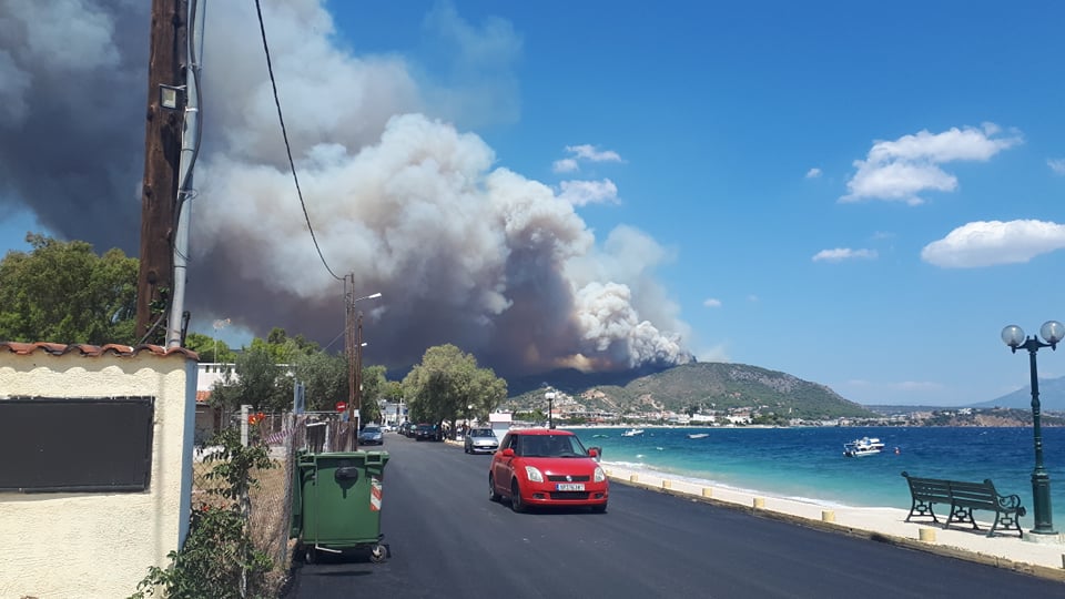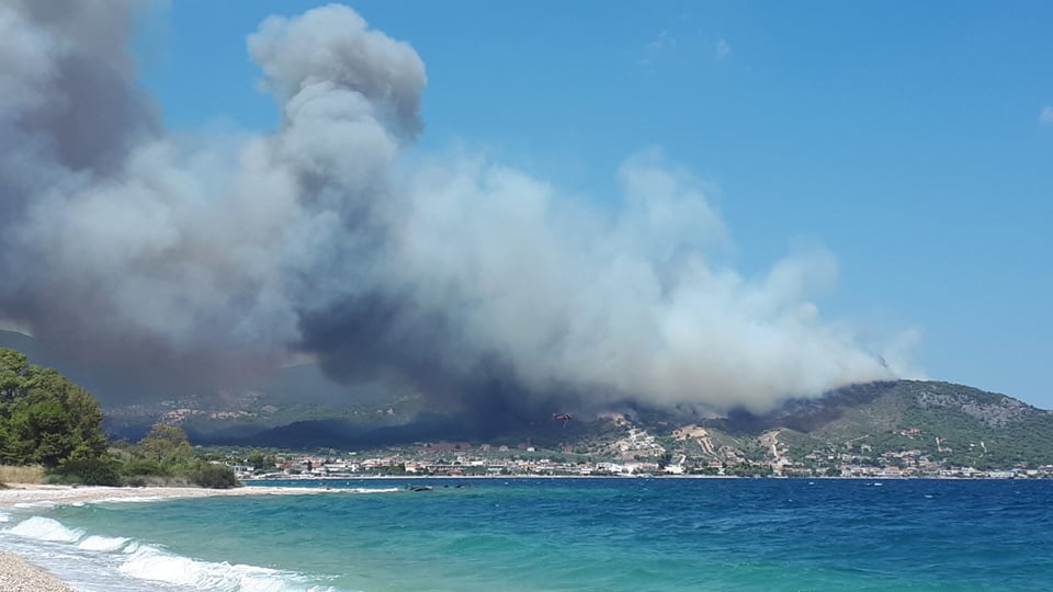 Η μεγάλη φωτιά που καίει δάσος στις Κεχριές Κορινθίας από το πρωί σήμερα Τετάρτη 22 Ιουλίου 2020 έχει ως αποτέλεσμα από τις μεσημεριανές ώρες να είναι αποπνικτική η ατμόσφαιρα σε περιοχές της Αργολίδας λόγω των έντονων βοριάδων.