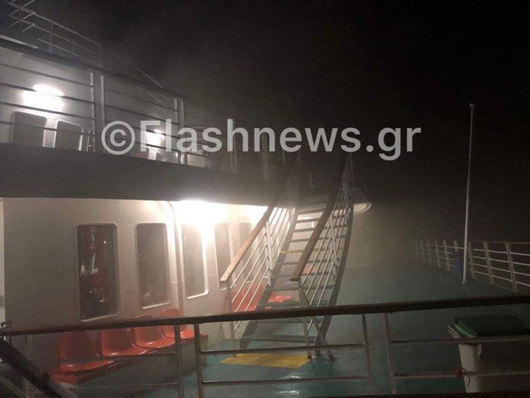 H κατάσταση στο πλοίο είναι υπό έλεγχο, καθώς αναδίδεται μόνο καπνός, όμως παρ’ όλ’ αυτά στελέχη της πυροσβεστικής υπηρεσίας θα ερευνήσουν εξονυχιστικά τους χώρους του γκαράζ, προκειμένου να δοθούν ξεκάθαρες οδηγίες για το αν θα πρέπει να ανοίξει ο καταπέλτης των οχημάτων.