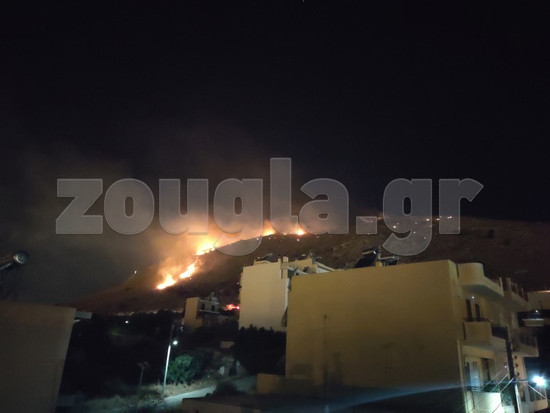 Η φωτιά καίει χαμηλή βλάστηση, στο ύψος του Ικονίου, και προς το παρόν δεν απειλεί σπίτια.