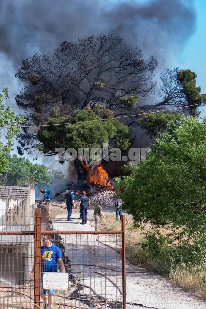 Αυτή τη στιγμή παραμένουν στο σημείο πυροσβεστικές δυνάμεις για το ενδεχόμενο αναζυπύρωσης.