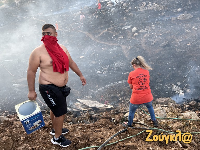Επίσης στην κατάσβεση συνδράμουν εθελοντές πυροσβέστες και υδροφόρες Ο.Τ.Α.