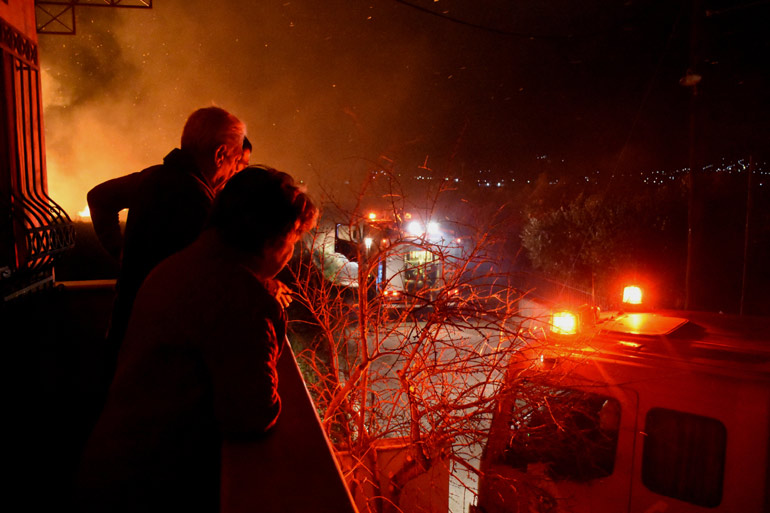 Στην περιοχή πνέουν πολύ δυνατοί άνεμοι ενώ η πυρκαγιά εκδηλώθηκε ανάμεσα στους Μύλους και την περιοχή Αγία Άννα στο Τημένιο με δύο εστίες και κατευθύνεται προς την παραλία.