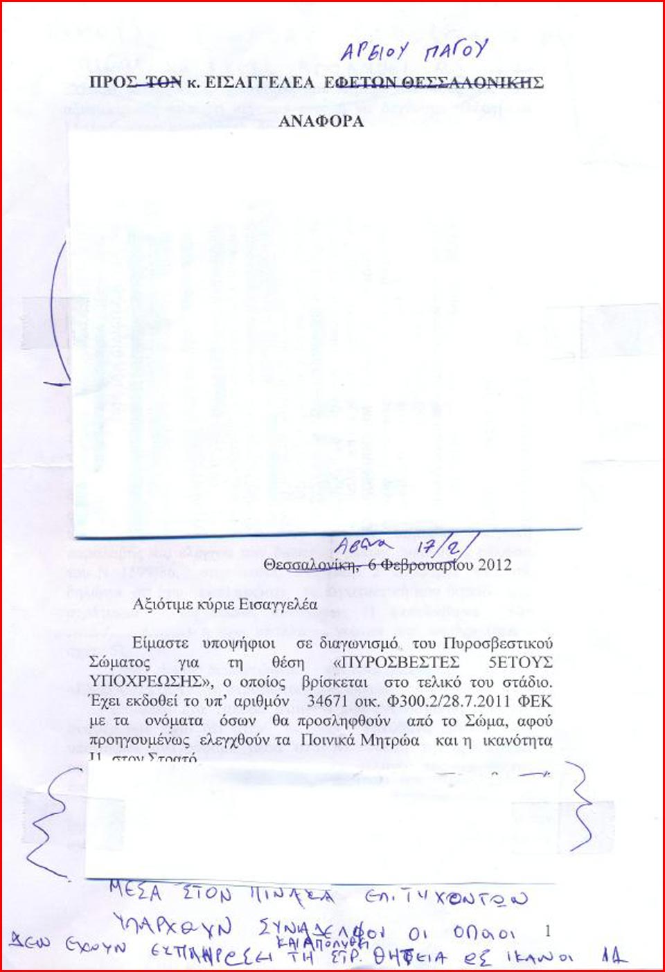 Τέλος, αξίζει να σημειωθεί ότι το θέμα απασχολεί πλέον και τον εισαγγελέα του Αρείου Πάγου, έπειτα από αναφορά που έκαναν υποψήφιοι του διαγωνισμού, περιγράφοντας την κατάσταση και ζητώντας την παρέμβασή του, ώστε να «τηρηθεί η νομιμότητα».