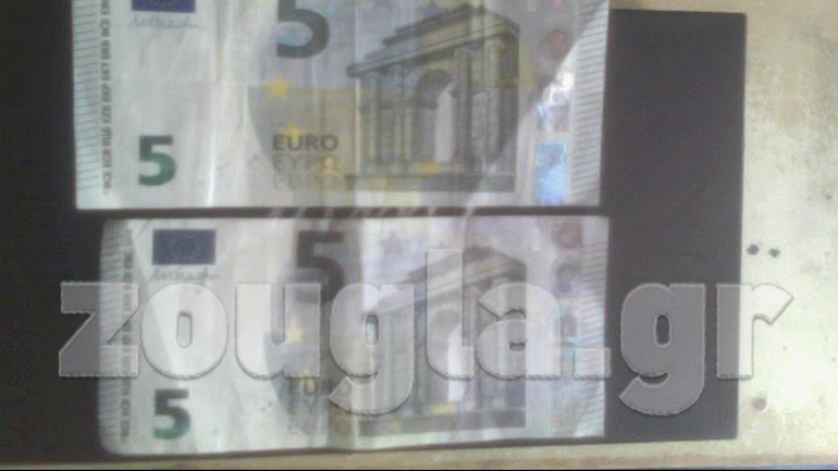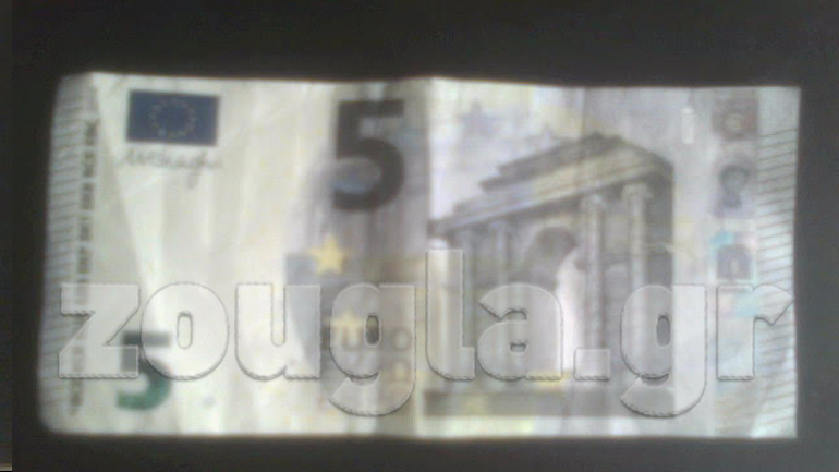 «Σήμερα το πρωί βρέθηκε στην κατοχή μου ένα κίβδηλο χαρτονόμισμα των 5ευρω. Είναι ελάχιστα μικρότερο σε μήκος-πλάτος από το γνήσιο και η λωρίδα στο πλάο…ξεθωριασμένη. Κακή ποιότητα εκτύπωσης πολύ εμφανής στον αριθμό 5 που βρίσκεται στη μέση του χαρτονομίσματος στην εμπρόσθια πλευρά», αναφέρει σε καταγγελία του αναγνώστης του zougla.gr για πλαστά χαρτονομίσματα που κυκλοφορούν στην αγορά.