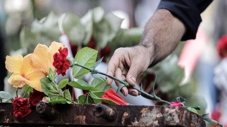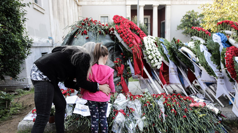Πολλές οικογένειες με παιδιά, εκπρόσωποι κομμάτων, φορέων, συλλόγων και της πανεπιστημιακής κοινότητας προσέρχονται από το πρωί στο Πολυτεχνείο, για να αποτίσουν φόρο τιμής στους φοιτητές που εξεγέρθηκαν τα ξημερώματα της 17ης Νοεμβρίου 1973.