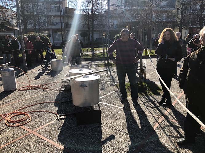 Το πατροπαράδοτο έθιμο της «γουρουνοχαράς» αναβίωσε και φέτος στην πλατεία της Φιλιππούπολης στη Λάρισα. Και όταν λέμε χαρά, εννοούμε το γλέντι με το σφάξιμο και το ψήσιμο του γουρουνιού.