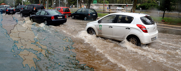 Στον ειδικό χάρτη που συνέταξε η Ειδική Υπηρεσία Υδάτων παρουσιάζονται οι περιοχές της Ελλάδας που απειλούνται περισσότερο από πλημμύρες