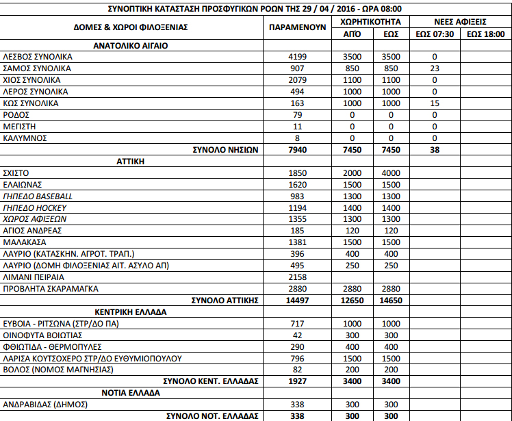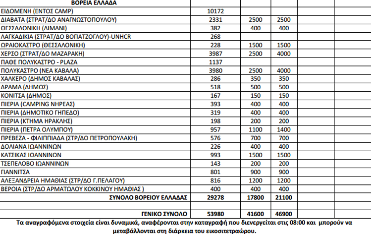 Συνολικά 53.980 πρόσφυγες και μετανάστες βρίσκονται σε διάφορες περιοχές της Ελλάδας, σύμφωνα με τα στοιχεία που δόθηκαν στη δημοσιότητα.