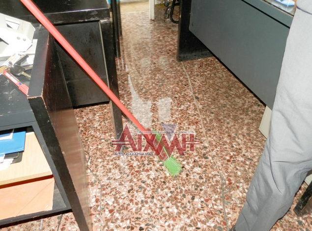 Γεμάτα νερό της βροχής βρήκαν σήμερα το πρωί τα γραφεία υπάλληλοι της Τροχαίας στο Μεσολόγγι, καθώς η δυνατή νεροποντή της νύχτας προκάλεσε προβλήματα τόσο στο κέντρο όσο και στα περίχωρα της πόλης.