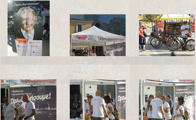 Λίγο πριν ξεκινήσει η ποδηλατάδα, οι εθελοντές της Διεθνούς Διαφάνειας μοίρασαν σφυρίχτρες για να σταλεί ένα ηχηρό μήνυμα πως είναι «Ώρα να Ξυπνήσουμε!».