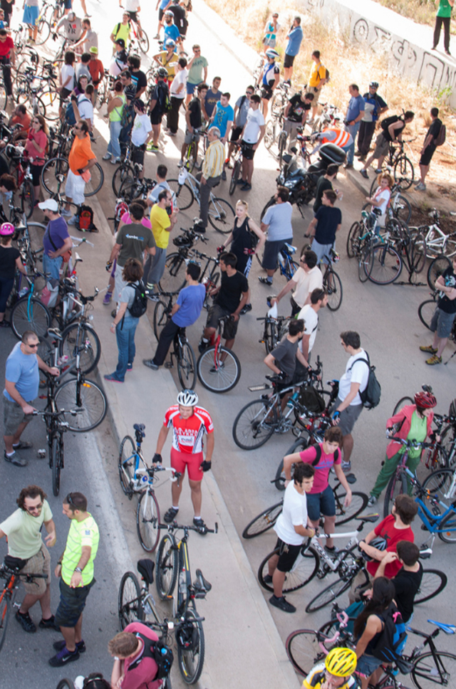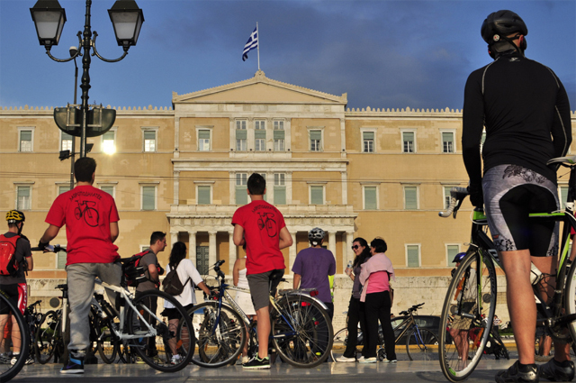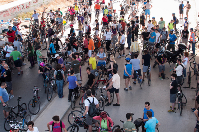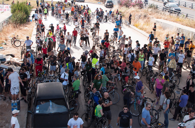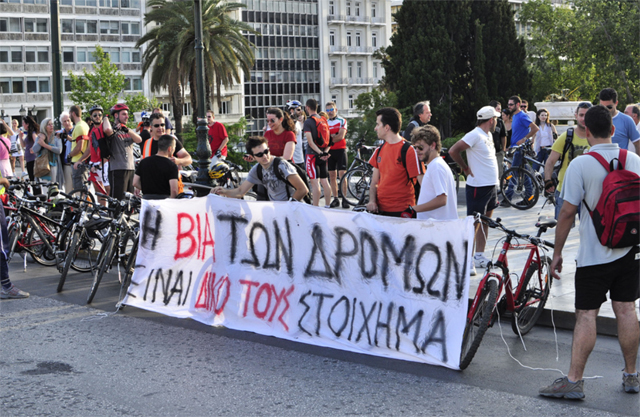 Οι ποδηλάτες απέκλεισαν την είσοδο στα αυτοκίνητα με σύνθημά τους «Η βία των δρόμων είναι δικό τους στοίχημα. Φτάνει πιά!».