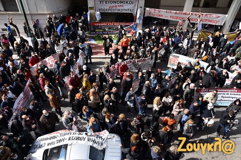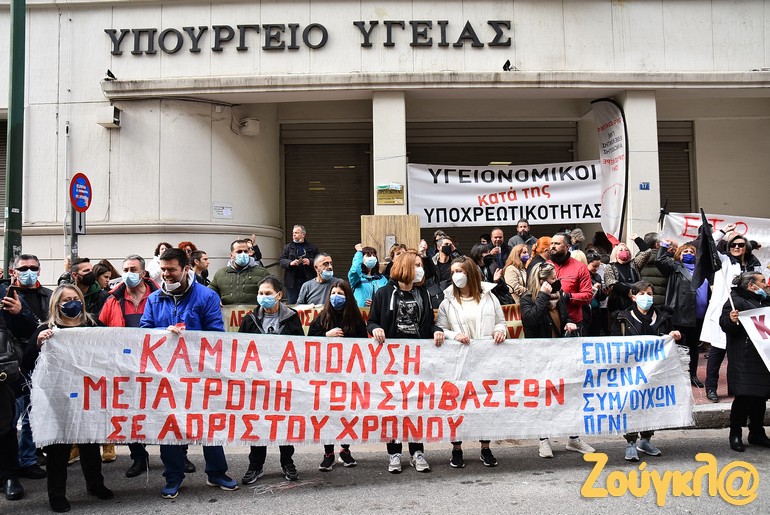 Συγκέντρωση διαμαρτυρίας έξω από το Υπουργείο Υγείας είχαν οι εργαζόμενοι με συμβάσεις ορισμένου χρόνου στα νοσοκομεία, σε συνδυασμό με την πανελλαδική στάση εργασίας από τις 12 το πρωί μέχρι τις 3 το μεσημέρι της Τετάρτης.