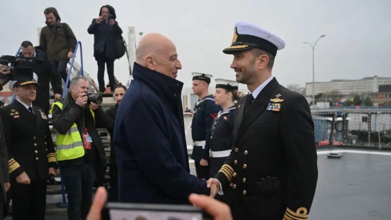 Με τον Υπουργό Εθνικής Άμυνας Νίκο Δένδια, όταν υψώθηκε η ελληνική σημαία στη φρεγάτα «Κίμων»