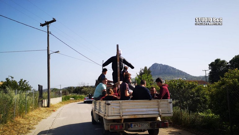 Νωρίς το απόγευμα της Κυριακής του Πάσχα νεαρά παιδιά με αγροτικό περιέφεραν το ομοίωμα του Ιούδα που είχαν ετοιμάσει και σε τοποθεσία κοντά στο γήπεδο του χωριού, τον πυροβόλησαν ενώ στο τέλος με εκρηκτικά τον ανατίναξαν.