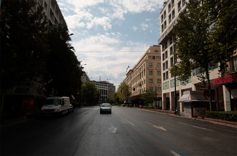 Η Αθήνα την Παρασκευή δεν θύμιζε σε τίποτα την πόλη που σφύζει από ζωή, ενώ στους δρόμους κυκλοφορούσαν ελάχιστα οχήματα.