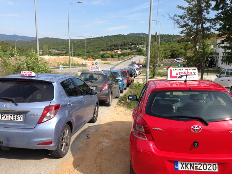 Σύμφωνα με το halkidikifocus.gr, οι οκτώ εξεταστές που εργάζονται στον νομό συμμετέχουν στην πανελλαδική αποχή που κήρυξε η ομοσπονδία τους (λόγω μη καταβολής από τις αρχές του 2016 του επιδόματος για τη συμμετοχή στις εξετάσεις). Αποτέλεσμα αυτής της στάσης είναι να έχει «παγώσει» κάθε διαδικασία έκδοσης νέου διπλώματος.