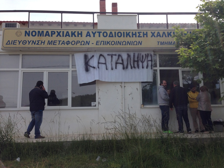 Με πανό και φωνάζοντας συνθήματα εκπαιδευτές υποψήφιων οδηγών εξέφρασαν το πρωί της Πέμπτης τη διαμαρτυρία τους έξω από τη Διεύθυνση Μεταφορών και Επικοινωνιών της Περιφερειακής Ενότητας Χαλκιδικής για τη μη διεξαγωγή πρακτικών εξετάσεων.