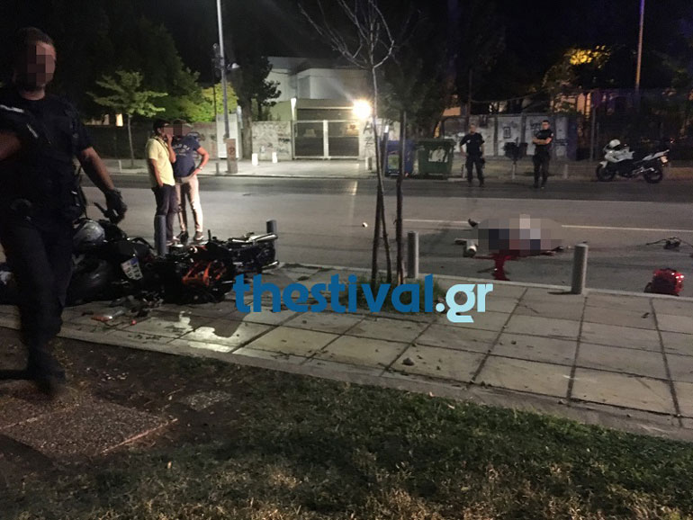 Οι τέσσερις αναβάτες προσγειώθηκαν στο πεζοδρόμιο και την άσφαλτο. Οι δύο αναβάτες της πρώτης μηχανής σκοτώθηκαν ακαριαία. Ο οδηγός της δεύτερης μηχανής και η συνεπιβάτιδά του μεταφέρθηκαν σοβαρότατα τραυματισμένοι στο νοσοκομείο Παπανικολάου. Ο νεαρός οδηγός υπέκυψε στα τραύματά του λίγο μετά από τη διακομιδή του στο νοσοκομείο. Η νεαρή νοσηλεύεται σε σοβαρή κατάσταση.