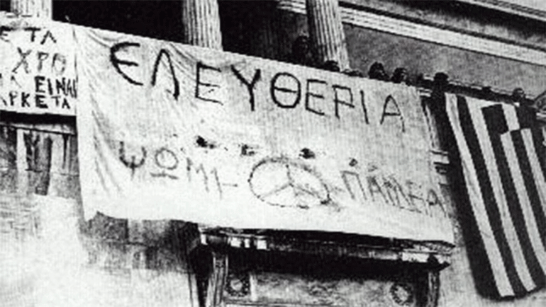Ξημερώματα Σαββάτου. Το ημερολόγιο έδειχνε «17 Νοεμβρίου 1973». Ένα τανκ κινείται προς τη σιδερένια πόρτα του Πολυτεχνείου της Αθήνας. Φοιτητές στέκονται πίσω από την πόρτα. Δεν υποχωρούν. Δεν φεύγουν. Βρίσκονται εκεί επί τρεις ημέρες, φωνάζοντας «Ψωμί-Παιδεία-Ελευθερία». Το τανκ ρίχνει την πόρτα. Τίποτα πια δεν θα είναι ίδιο. Γιατί λίγους μήνες μετά, θα ακολουθήσει η πτώση της Χούντας των συνταγματαρχών.
