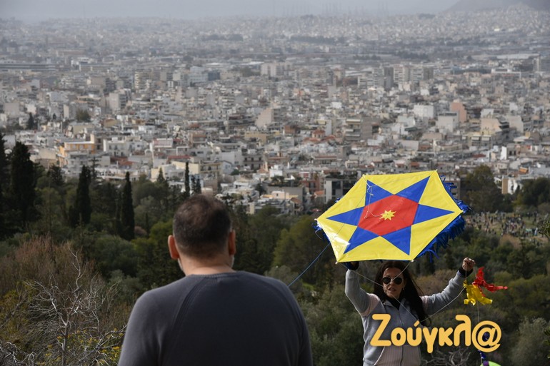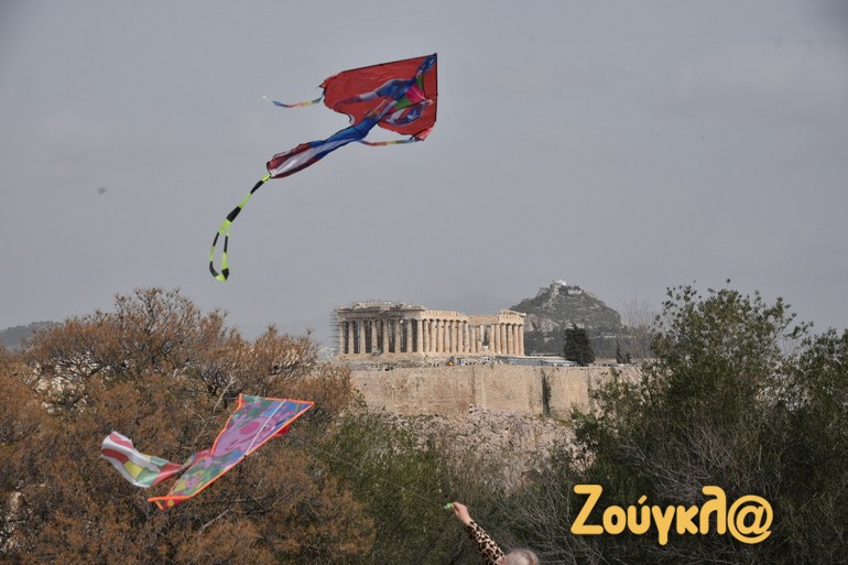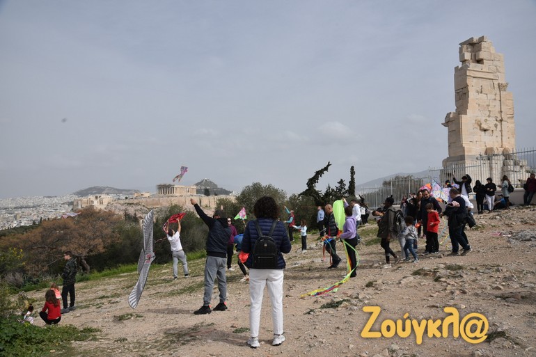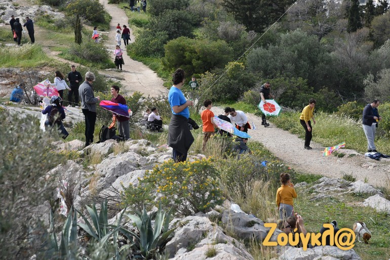 Εκατοντάδες Αθηναίοι με τις οικογένειές τους συγκεντρώθηκαν στον λόφο του Φιλοπάππου για να γιορτάσουν τα Κούλουμα με το πέταγμα χαρταετών. Παράξενοι, πολύχρωμοι και ευφάνταστοι χαρταετοί υψώνονται στον ουρανό.
