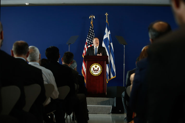 Στην ομιλία του Πομπέο μεταξύ άλλων έδωσαν το «παρών»: ο αντιπρόεδρος της κυβέρνησης και πρώην πρωθυπουργός Παναγιώτης Πικραμμένος, οι υπουργοί Εξωτερικών Νίκος Δένδιας, Άμυνας Νίκος Παναγιωτόπουλος, Εσωτερικών Τάκης Θεοδωρικάκος, Επενδύσεων και Ανάπτυξης Άδωνις Γεωργιάδης, Ενέργειας και Περιβάλλοντος Κωστής Χατζηδάκης, Δικαιοσύνης Κώστας Τσιάρας, Παιδείας Νίκη Κεραμέως, Υγείας Βασίλης Κικίλιας, ο αναπληρωτής υπουργός Εξωτερικών Μιλτιάδης Βαρβιτσιώτης, ο κυβερνητικός εκπρόσωπος Στέλιος Πέτσας, ο υφυπουργός Εξωτερικών Κωνσταντίνος Φραγκογιάννης, ο τομεάρχης Εξωτερικών του ΣΥΡΙΖΑ Γιώργος Κατρούγκαλος, ο πρώην υπουργός Εθνικής Άμυνας Ευάγγελος Αποστολάκης, ο διπλωματικός σύμβουλος του Αλέξη Τσίπρα Βαγγέλης Καλπαδάκης, ο περιφερειάρχης Αττικής Γιώργος Πατούλης, ο δήμαρχος Θεσσαλονίκης Κωνσταντίνος Ζέρβας, η πρέσβειρα Καλής Θελήσεως της Ουνέσκο Μαριάννα Βαρδινογιάννη.