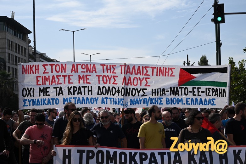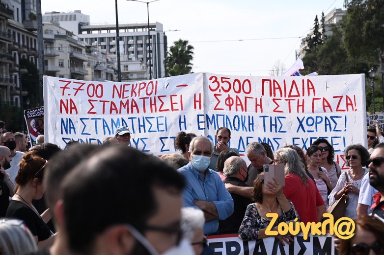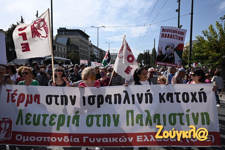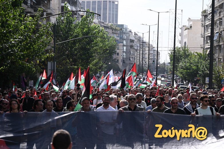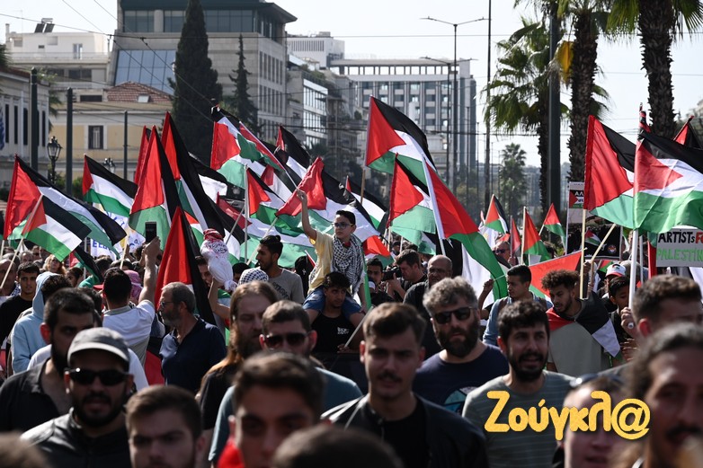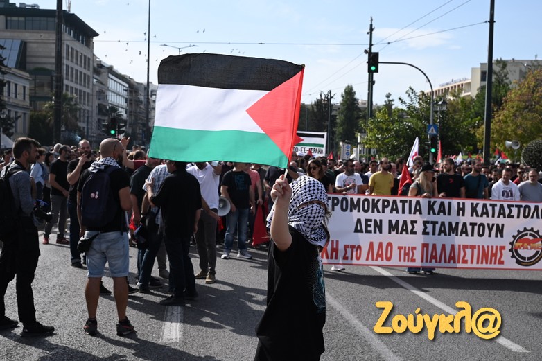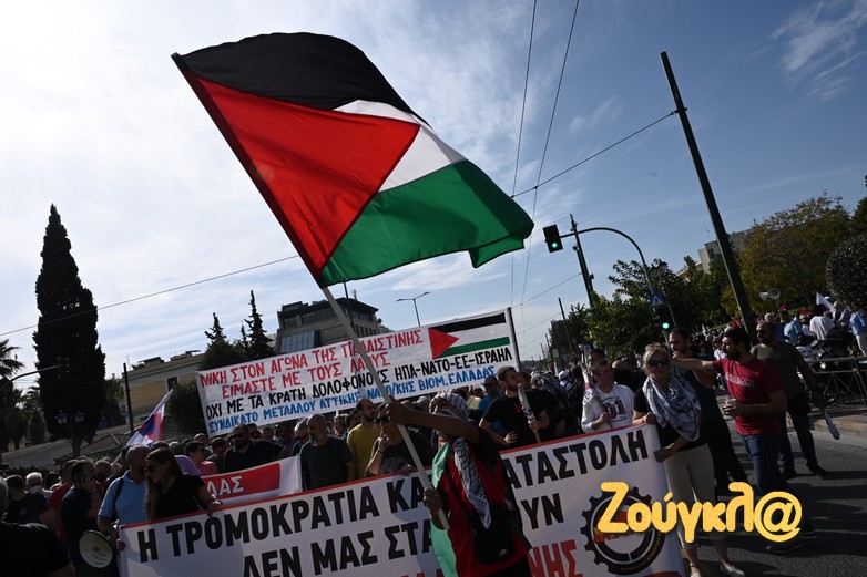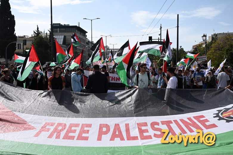 Πορεία αλληλεγγύης στον Παλαιστινιακό λαό πραγματοποιήθηκε το μεσημέρι της Κυριακής στο κέντρο της Αθήνας.