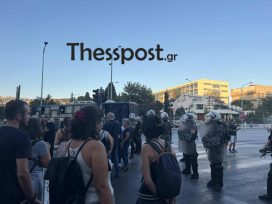 Η πορεία έφτασε λίγο τις 7 το απόγευμα στην Εγνατία στο ύψος της οδού Εθν. Αμύνης. Εκεί την περίμενε μπλόκο της ΕΛ.ΑΣ., με τους διαδηλωτές να ξάνουν ξεκάθαρο ότι θέλουν να φτάσουν έξω από το γήπεδο της Τούμπας. Ωστόσο τα ΜΑΤ δεν άφησαν τους διαδηλωτές να περάσουν. Έτσι η πορεία μέσω της Εθν. Αμύνης θα κατευθυνθεί προς την παραλιακή, έπειτα επί της Τσιμισκή με κατεύθυνση στα δυτικά.