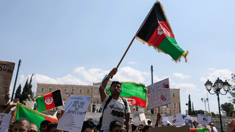 Πορεία διαμαρτυρίας πραγματοποίησαν Αφγανοί πολίτες που ζουν στην Αθήνα με αφορμή την Ημέρα Ανεξαρτησίας του Αφγανιστάν και τα γεγονότα που εξελίσσονται στη χώρα μας μετά την κατάληψη και της Καμπούλ από τους Ταλιμπάν.
