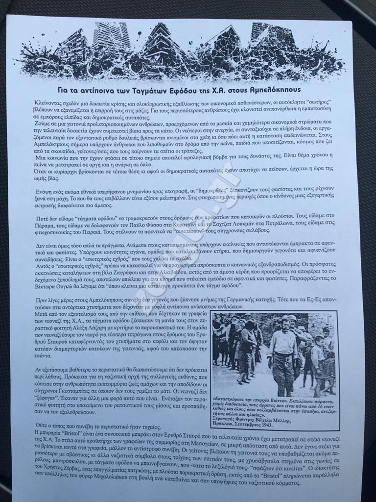 Άτομα που πρόσκεινται στον αντεξουσιαστικό χώρο πραγματοποίησαν πορεία από την οδό Πανόρμου, προς τον Ερυθρό Σταυρό, όπου νοσηλευόταν ο 24χρονος φοιτητής που δέχτηκε επίθεση από μέλη της Χρυσής Αυγής.