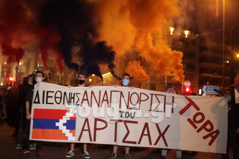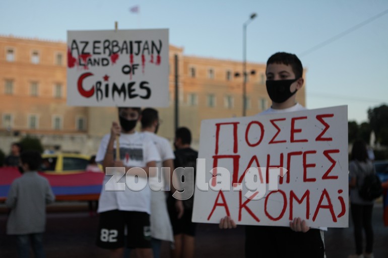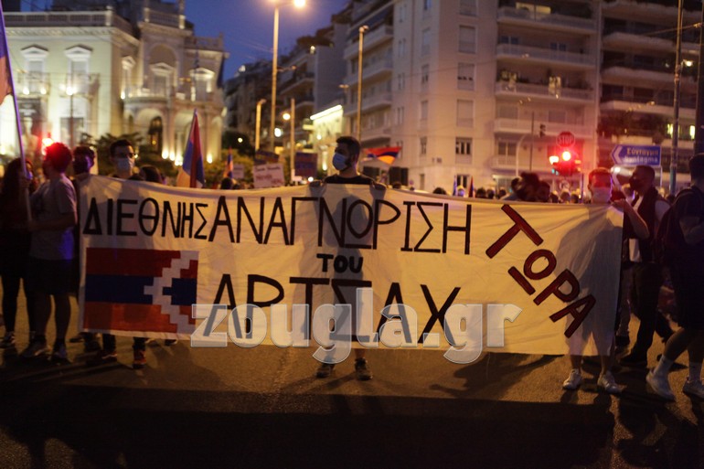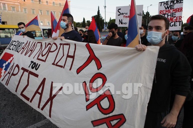 Συγκέντρωση στο Σύνταγμα και πορεία προς την τουρκική Πρεσβεία πραγματοποίησαν την Τετάρτη το μεσημέρι, Αρμένιοι που ζουν στην Ελλάδα για τις πολεμικές συγκρούσεις στο Ναγκόρνο Καραμπάχ μεταξύ Αρμενίων και Αζερμπαϊτζάν και τη θέση της Τουρκίας σε αυτές.